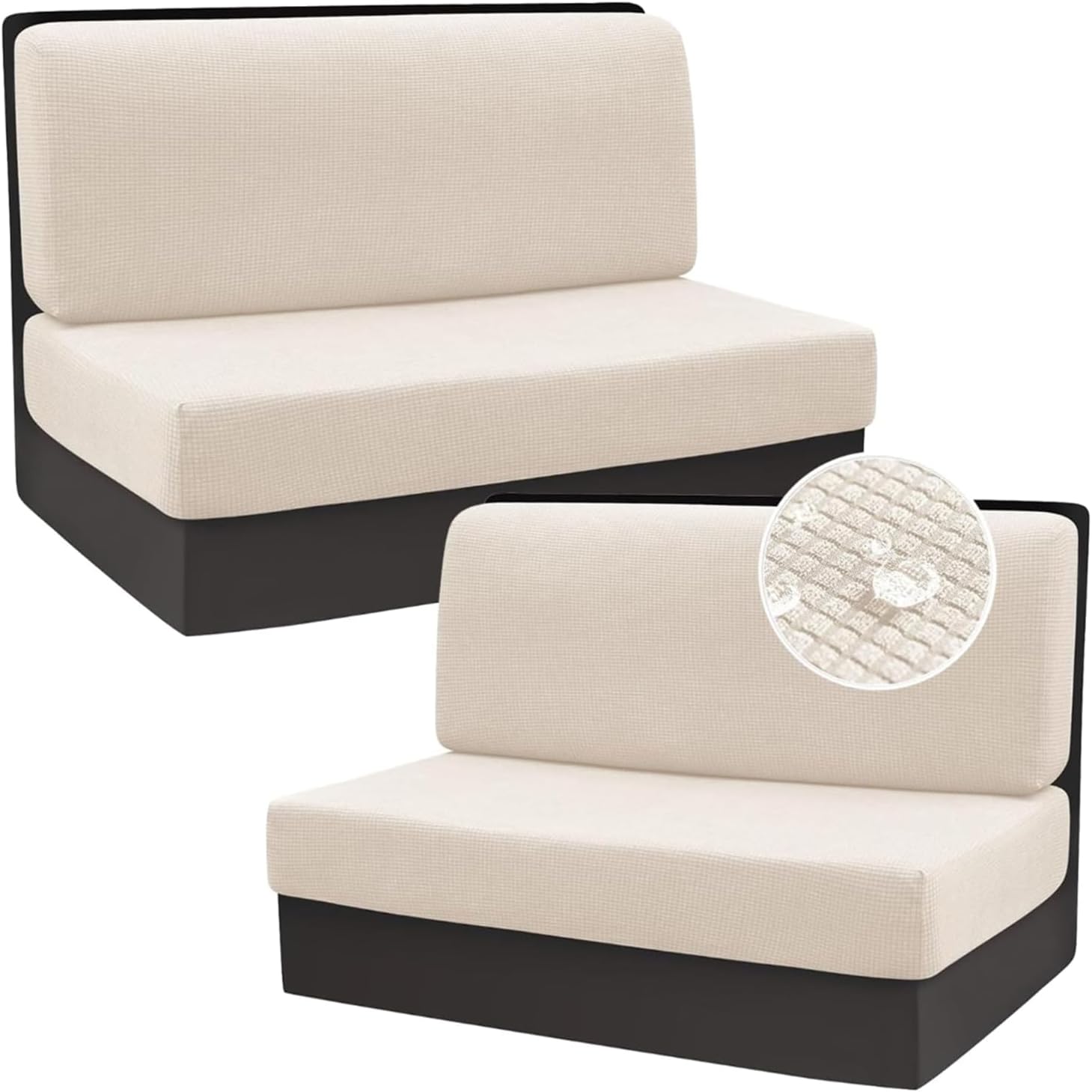 RV Dinette Cushions Covers- RV Stretch Sofa Seat Slipcovers -Washable Loveseat Sofa Furniture Protector for RV Camper Car BenchPackage includes: 2 Backrest Cover & 2 Bench CoverSpecification:Material: FabricDimensions: 26"d x 50"w x 18"hWeight: 0.6 kg (1.32 lbs)How to install RV dinette seat covers:1. The cushion cover measures up to (39-50 inch) length, (20-26 inch) wide, (4-8 inch) thickness. The bench cover measures up to (39-50 inch) length, (12-18 inch) wide, (4-8 inch) thickness.2. Find the corners of the cushion covers and place it on the corners of the cushion.3. Open the elastic bands and put the RV dinette seat cover into the cushion.4. Adjust the seat cover to give your seat cushion a new look.Note:1. They should never be ironed, bleached, or dry-cleaned, but you can tumble dry them on low heat2.This rv dinette cushion covers can adapt to most of the size of the rv dinette cushions replacement3.Kindly measure your cushion before ordering to ensure the best fit.Please allow 0.5-1 inch error due to manual measurement and stretch fabric4.All pictures in-kind shooting, but maybe still a little color difference due to different shooting light and monitors